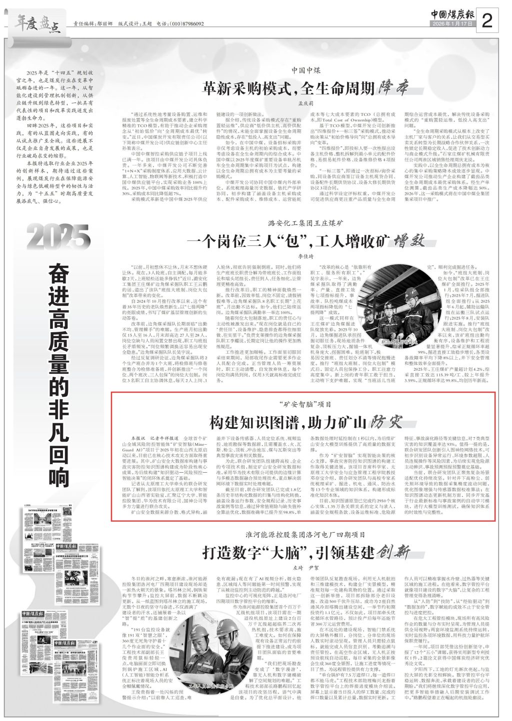 1月17日,《中国煤炭报》以《“矿安智脑”项目 构建知识图谱,助力矿山防灾》为题对我院全球首个“矿安智脑”项目进行报道。现将全文转载如下。