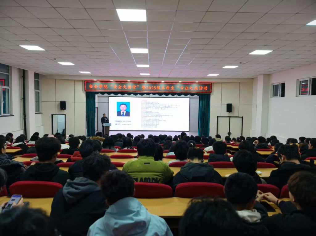 为深入学习贯彻习近平总书记关于青年工作的重要思想和关于教育的重要论述,推动育人力量下沉到学生社区一线,引导广大学生深刻认知不同专业承载的国家使命与社会责任,拓宽专业选择视野,提升专业决策格局,进而树立崇高专业理想,明晰学业发展方向, 12月17日晚,安全与应急管理工程学院“安全大讲堂”第四讲正式开讲。学院院长杨威教授以《防患于未然,化险为无形,护航新时代发展》为题,为全体一年级新生带来一场有深度、有温度、有引领的专题报告。报告由学院党委副书记王利舟主持。