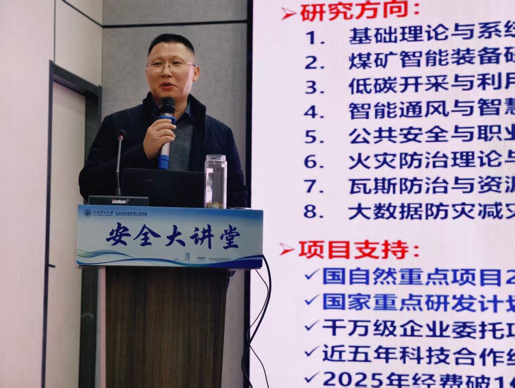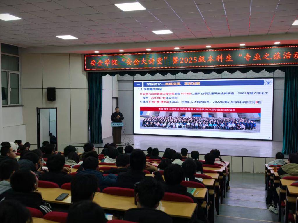 报告中,杨威深情回顾了自己从一名安全专业学子逐步成长为学科带头人与学院管理者的心路历程,勉励同学们,要早早树立主人翁意识,将个人成长融入专业学习的每一步,在探索中明确方向,在坚持中收获成长。他指出,安全与应急是一项“崇高高尚、至重至要”的事业,不仅是工程技术问题,更是关乎人民生命安全、经济社会稳定可持续发展的重大战略问题。他系统梳理了学院自1958年山西矿业学院通风教研室发轫,六十余载薪火相传、砥砺奋进,逐步发展成为今日学科体系完整、师资力量雄厚、科研特色鲜明的蓬勃历程。他强调,新时代赋予了安全人更为重大的责任:必须面向国家重大需求,面向经济主战场,面向人民生命健康,致力于实现从被动应对到主动保障、从局部防控到系统治理的深刻转变,为构建新发展格局提供坚实的安全支撑。
